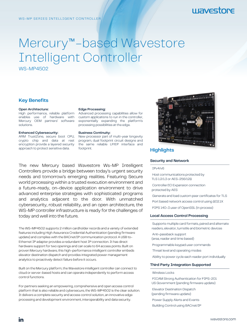 Mercury™-based Wavestore Intelligent Controller - WS-MP1502 - WaveFusion
